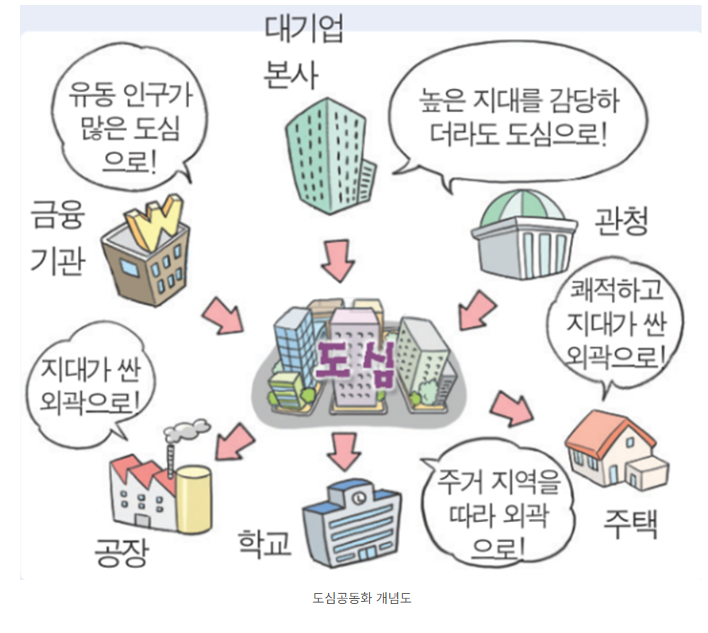 대기오염·교통혼잡·땅값 상승 등으로 인구가 도시 외곽으로 빠져나가는 현상을 도심 공동화, 제조업의 해외 공장 이전으로 국내 생산이 줄어드는 것을 산업 공동화라고 한다.