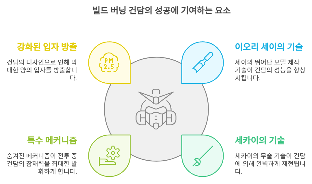 빌더는 이오리 세이로, 이오리 세이가 제11회 건프라 배틀 선수권 대회에서 사용했던 건프라를 개조한 기체임. 원래 빌드 버닝은 언젠가 돌아올 자신의 친구를 위해 세이가 제작한 기체임. 빌드 파이터즈 OVA GM의 역습에서 추가된 설정에 따르면 본기의 전신이 된 기체는 스타 버닝 건담이라는 건프라임.