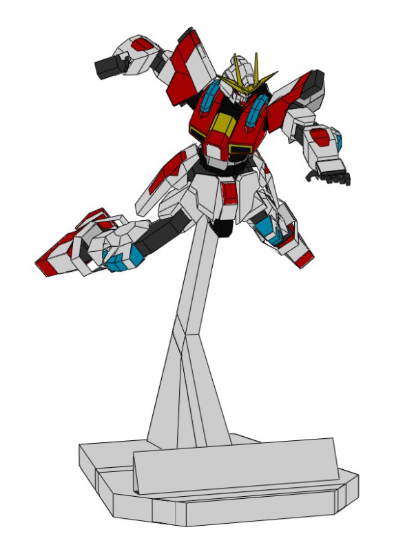 세이호 학원 건프라 배틀부실에 어떤 특수한 방법으로 숨겨져 있었으나, 부실에서 벌어진 세카이의 첫 건프라 배틀 도중 모종의 과정을 거쳐 해방되어 세상에 그 존재를 드러내게 됨. 일체의 무장 및 내장화기가 없는 순수한 근접 격투 지향 기체로서, 이오리 세이의 탁월한 건프라 제작 기술 덕분에 건프라 배틀 초심자인 세카이도 자유자재로 다룰 수 있을 정도로 높은 완성도를 자랑함. 세카이가 익힌 차원패왕류 권법의 테크닉을 완벽하게 재현한 격투전이 장기임. 무릎, 팔꿈치, 어깨 등 기체 각 부위에 박혀 있는 클리어 파츠는 평상시에는 푸른 빛을 띠지만, 기체와 파이터의 컨디션이 최고조가 되어 기체의 출력이 올라갔을 때 주황빛으로 물들어 밝게 빛나는 기믹이 발동함. 이 상태에서 백팩과 손발에서 공격 시에 불꽃과 같은 이펙트를 방출하여 공방의 궤적을 형성함.