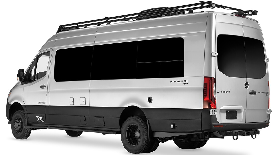 에어스트림 인터스테이트 24X는 2단 트랜스퍼 케이스와 로우 레인지로 부팅이 가능한 4륜 구동 모델이다. 6개의 LT215/85R16 타이어, 그리고 야생의 오프로드에 대응하기 위한 타이어 코팅이 되어 있다. 또한 오프로드에서 긁힘과 긁힘으로부터 범퍼와 측면 몰딩을 보호할 수 있는 차체 코팅이 되어 있다. 에어스트림 인터스테이트 24X에는 42인치 LED 라이트 바와 사이드 및 리어 포드 LED 조명이 추가로 장착되어 있다. 루프 랙에도 동력식 파티오닝에도 LED 조명 스트립이 있다.