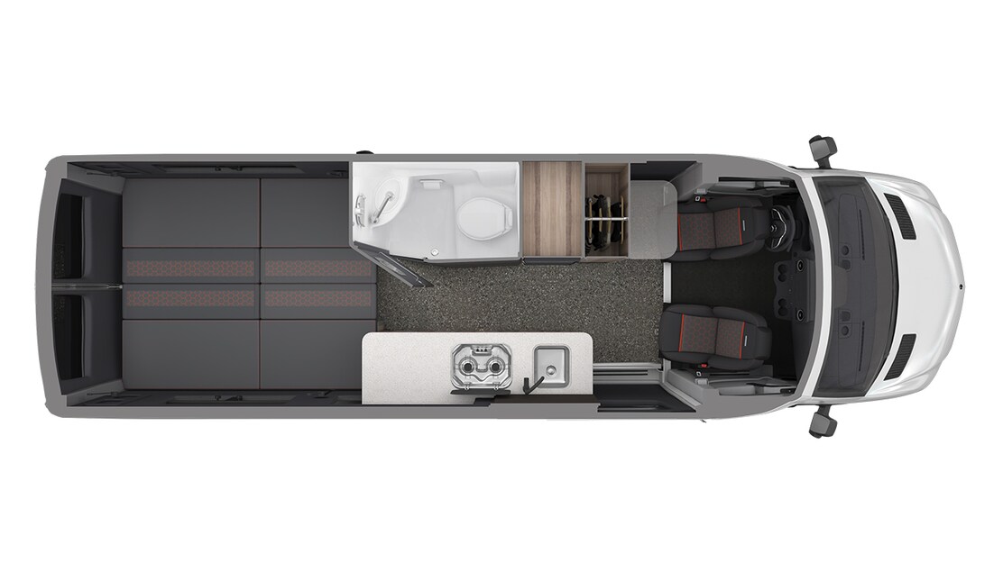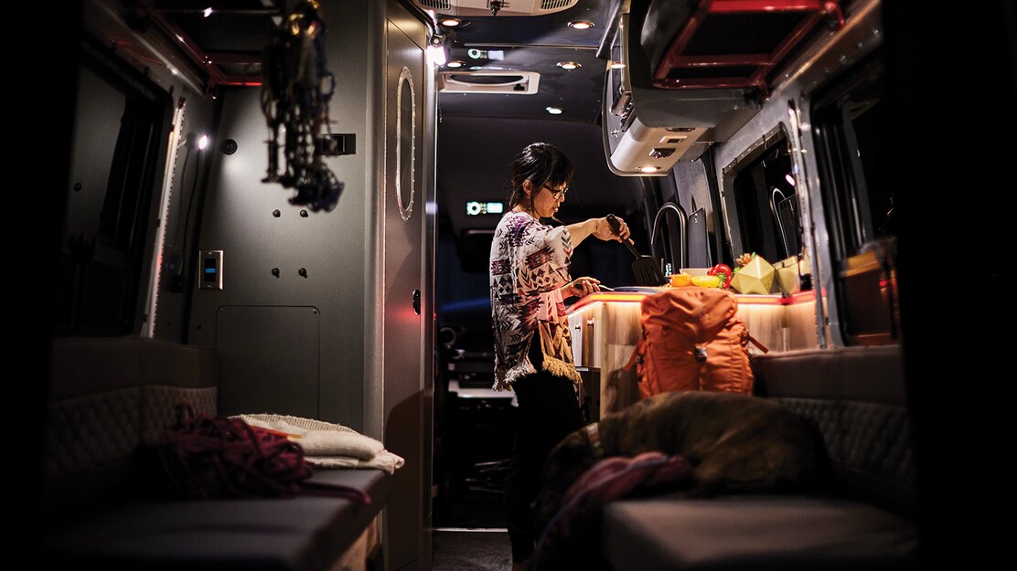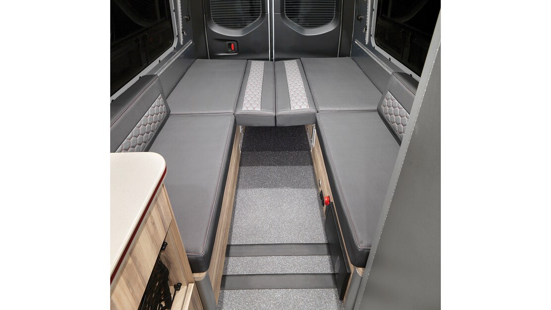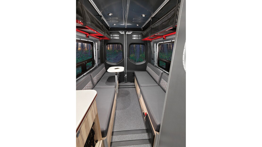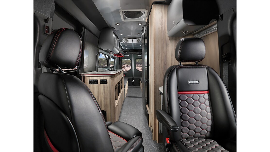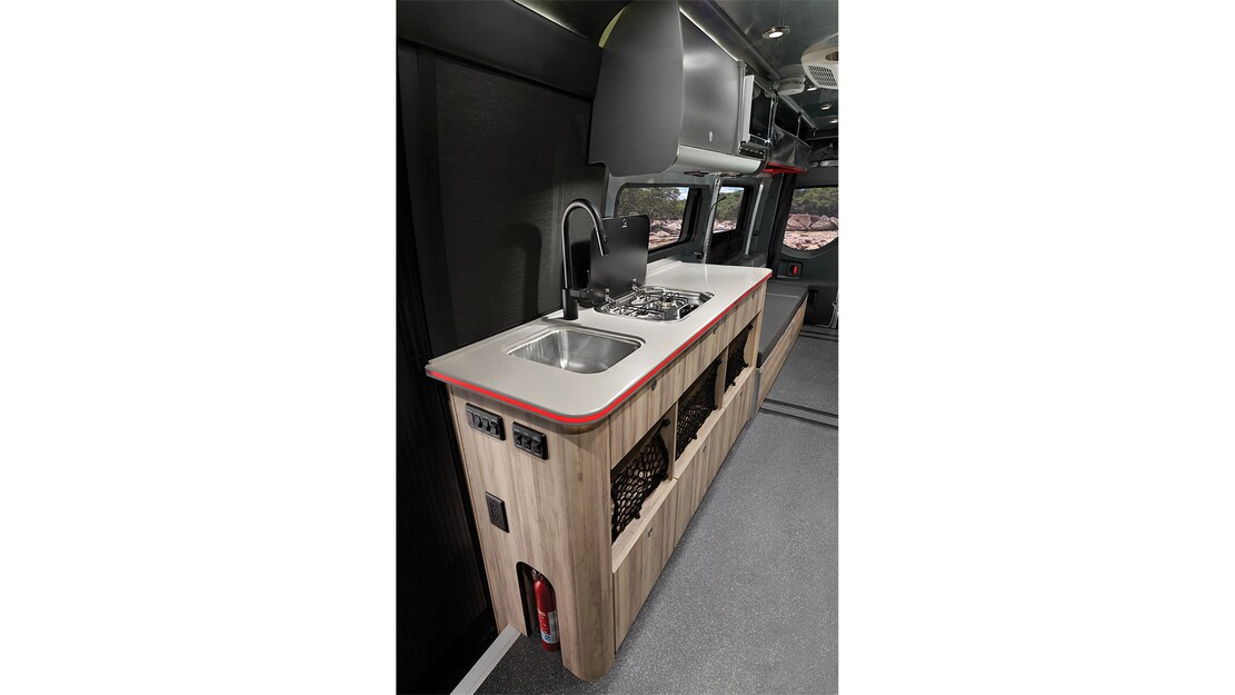 2022 에어스트림 인터스테이트 24X의 Red Rock 내부는 다목적이며, 머리 위에는 넉넉한 수납 칸과 갤러리에 대형 서랍과 캐비닛이 설치되어 있다. 벽, 천장 및 바닥의 L-트랙 스토리지 시스템은 어드벤처 장비를 안전하게 보호한다. 밴은 4가지 방법으로 구성할 수 있는 대형 리어 침대와 4가지 장착 옵션이 있는 모듈식 테이블 시스템을 갖추고 있다. 산책로나 자연 눈보라가 몰아치는 동안 모험가들을 편안하게 해 줄 수 있는 모든 편의 시설을 갖추고 있다. 그 중 일부는 가열식 습식 욕조, Quiet Series 13,500-BTU 에어컨, 효율적인 Hydronic Timberline 용해로 및 온수 시스템, 측면과 후면의 외부 세척소, 2버너 조리대, 0.7 큐빅 피트 마이크로웨이브, 에너지 효율적인 5.0-큐빅 12V 냉장고가 포함되어 있다.