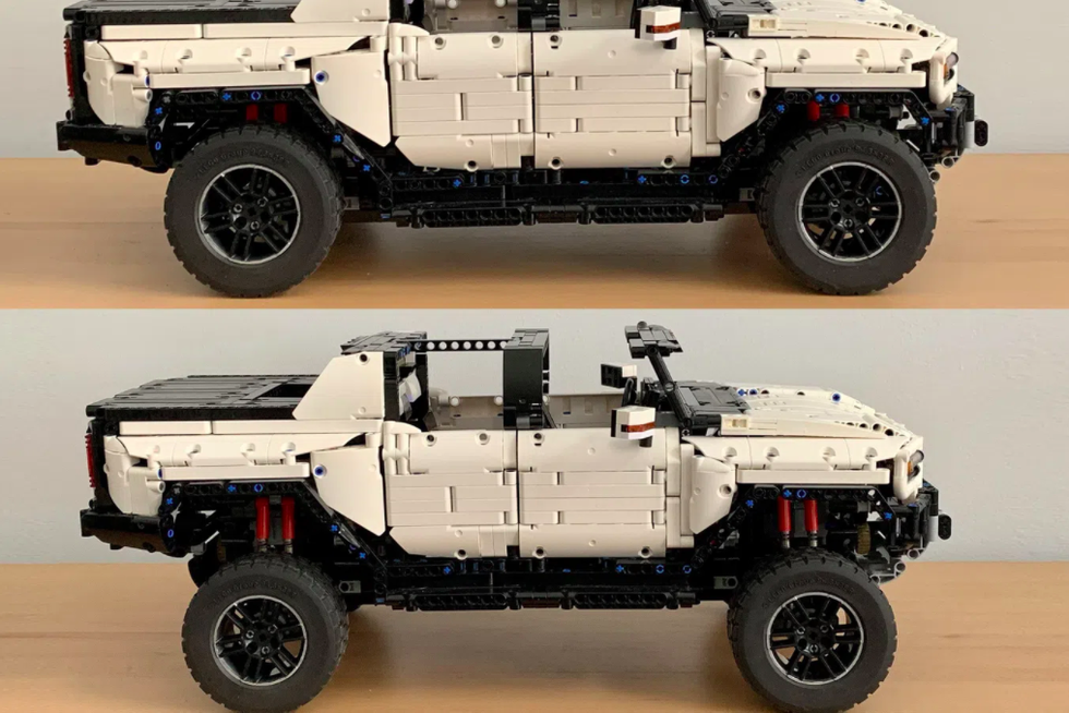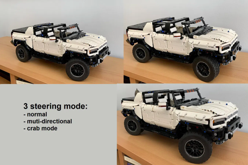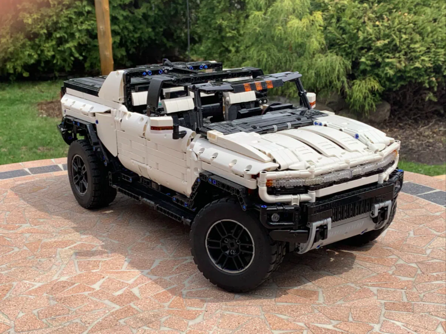 이 작품은 레고 '아이디어' 사이트에 제출되었고, 이 2200개 레고블럭으로 만들어진 디자인 세트는 현실의 험머 EV 기능으로 가득 차 실제 트럭과 매우 높은 싱크로율을 보인다. 내부에는 좌석과 핸들이 달린 풀인테리어까지 갖췄다. 4개의 도어가 모두 열리고 닫힙니다. 토너 커버와 프론트 트렁크 역시 실제 자동차와 비슷하게 작동한다.