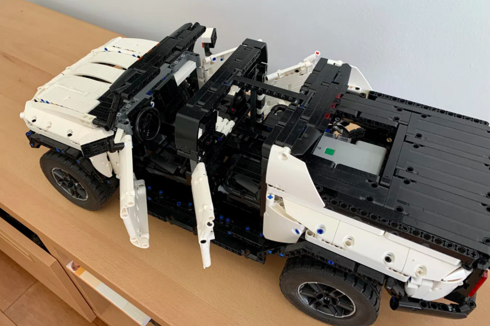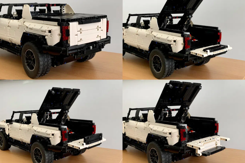 네 개의 모터를 적용하여 4륜으로 구동되고 크랩 워크 모드가 있으며 스팟 온 스타일의 실물 GMC Hummer EV는 아직 전시장에 도착하지도 않았는데, 어느 매니아가 레고 블럭과 모터로 놀랍도록 사실적이고 세밀한 GMC Hummer EV를 만들어 냈다.