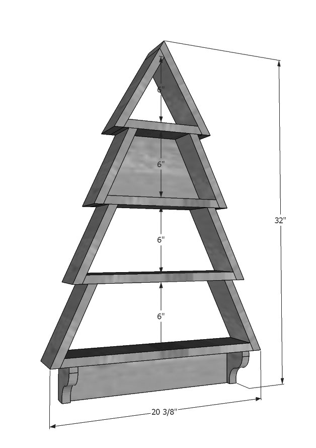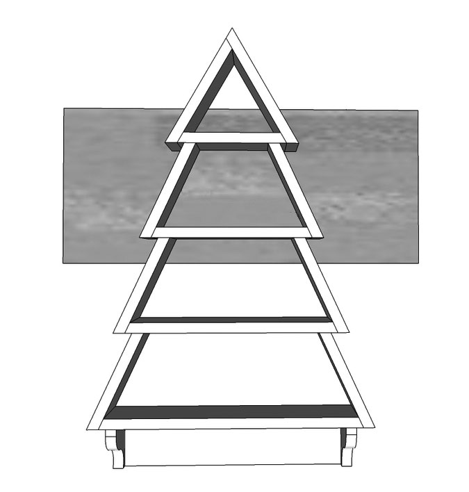 트리선반의 높이가 32"(인치)이다. 이를 센티미터로 환산하면 81.28cm이다. 우리는 미터법을 사용하기에 높이는 80~90cm로 결정하면 된다. 또 맨밑단의 폭은 20과 3/8"(인치)이다. 이를 cm로 환산하면 51.75cm이다. 우리는 하단폭을 52cm로 결정하면 된다. 하지만, 이거고 저거고 다 떠나 크기는 만드는 사람의 마음대로 결정하면 된다.