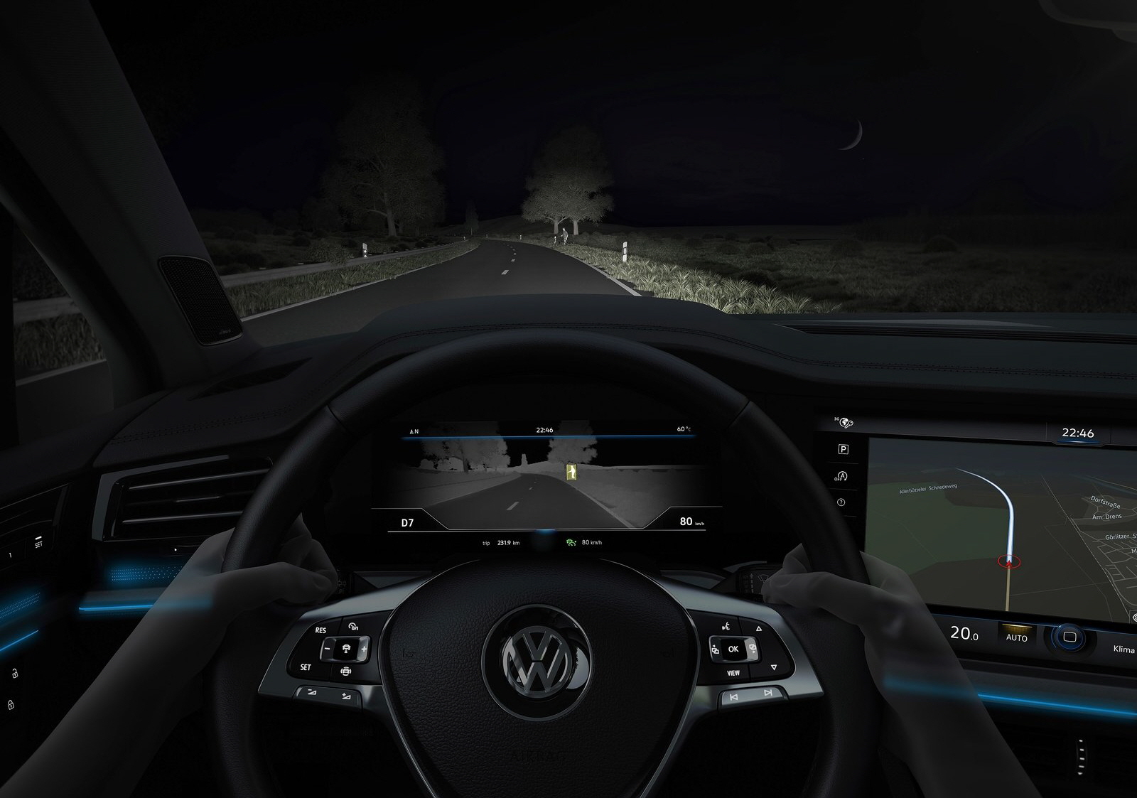 하향 및 주 빔 전조등의 75 LED, 근거리 조명 LED 7개(5개의 반사기 챔버 내) 및 3개의 코너링 LED를 통해 Touareg의 전자장치에 의해 다수의 지능형 조명 기능이 활성화 된다. 1초 이내에 제어 프로세서는 전면 카메라의 신호, 내비게이션 시스템의 디지털 지도 데이터, GPS 신호, 스티어링 휠 각도 및 전류 주행 속도를 활용하여 최상의 조명을 위해 특정 LED를 개별적으로 작동한다.