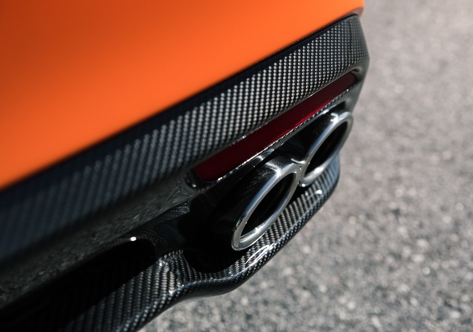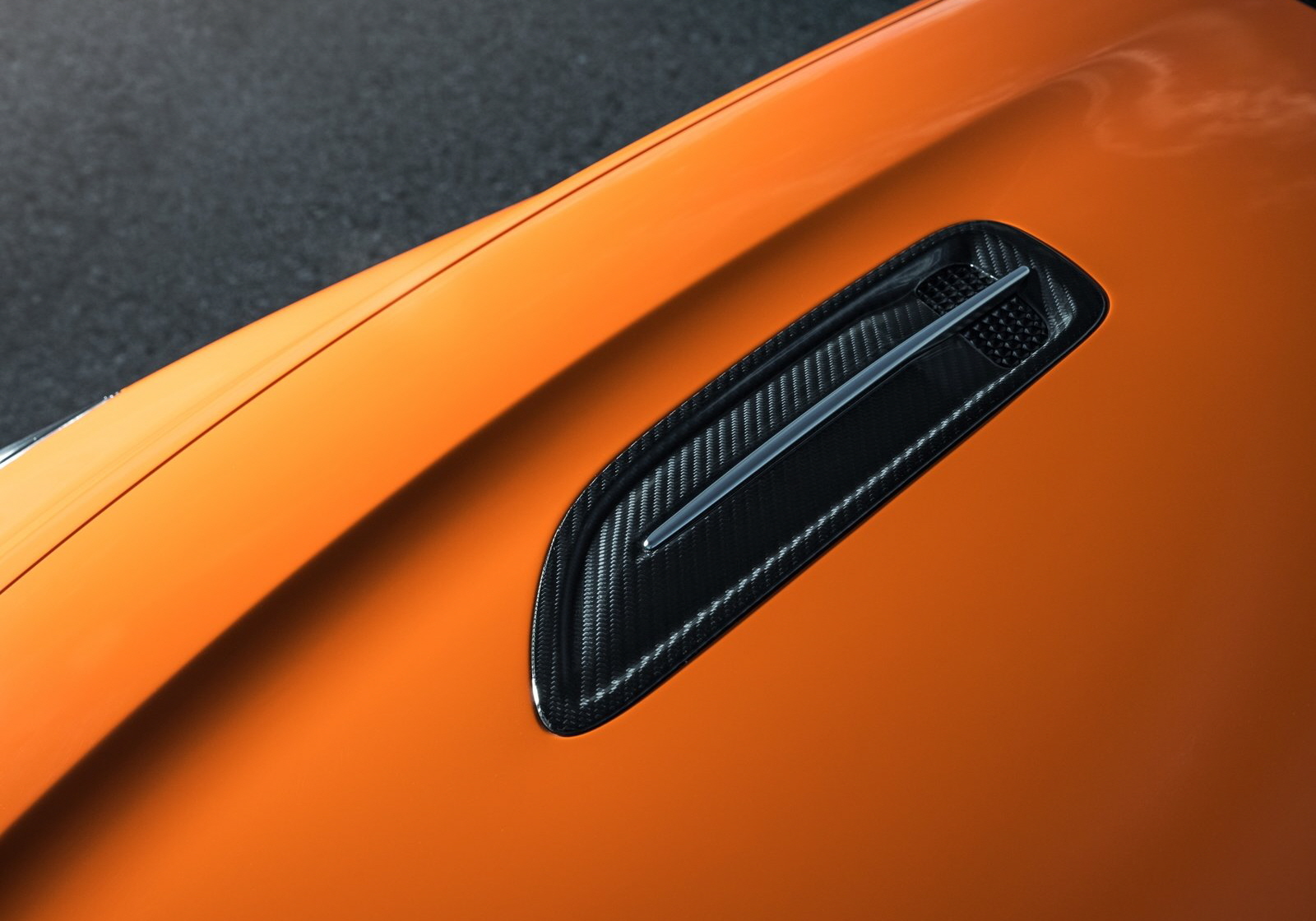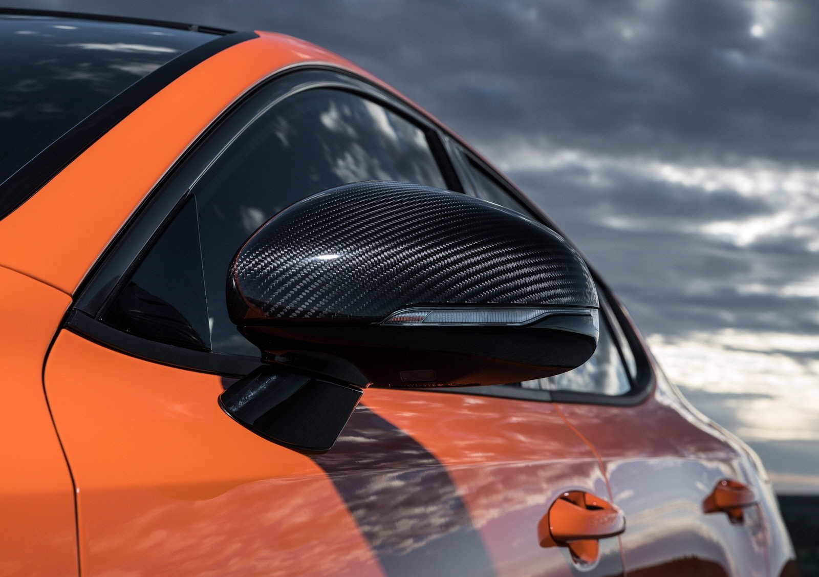 -호랑이 코 그릴, 사이드 미러 캡 및 측면 통풍구의 윤곽을 보여주는 정품 탄소 섬유 부품