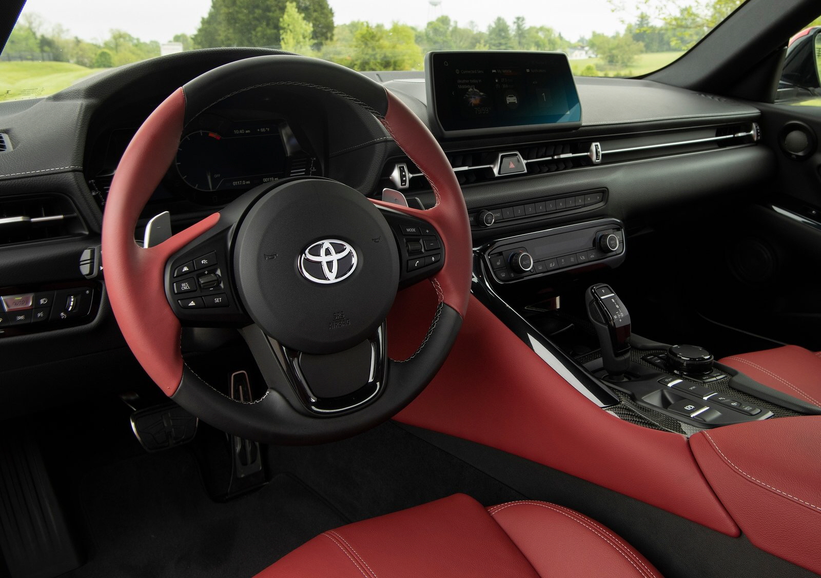 GR Supra는 "운전자 중심"에 대해 다른 접근법을 제시한다. 렉서스 브랜드의 LFA 슈퍼카 및 현재의 LC 플래그십 쿠페에서와 다른 수평 대시보드 테마는 개방감과 폭을 전달한다. 낮고 좁은 구간을 달리는 주행은 운전자에게 전방 시야를 넓혀 주며, 차량을 코너에 정확하게 배치하는 데 이상적이다.