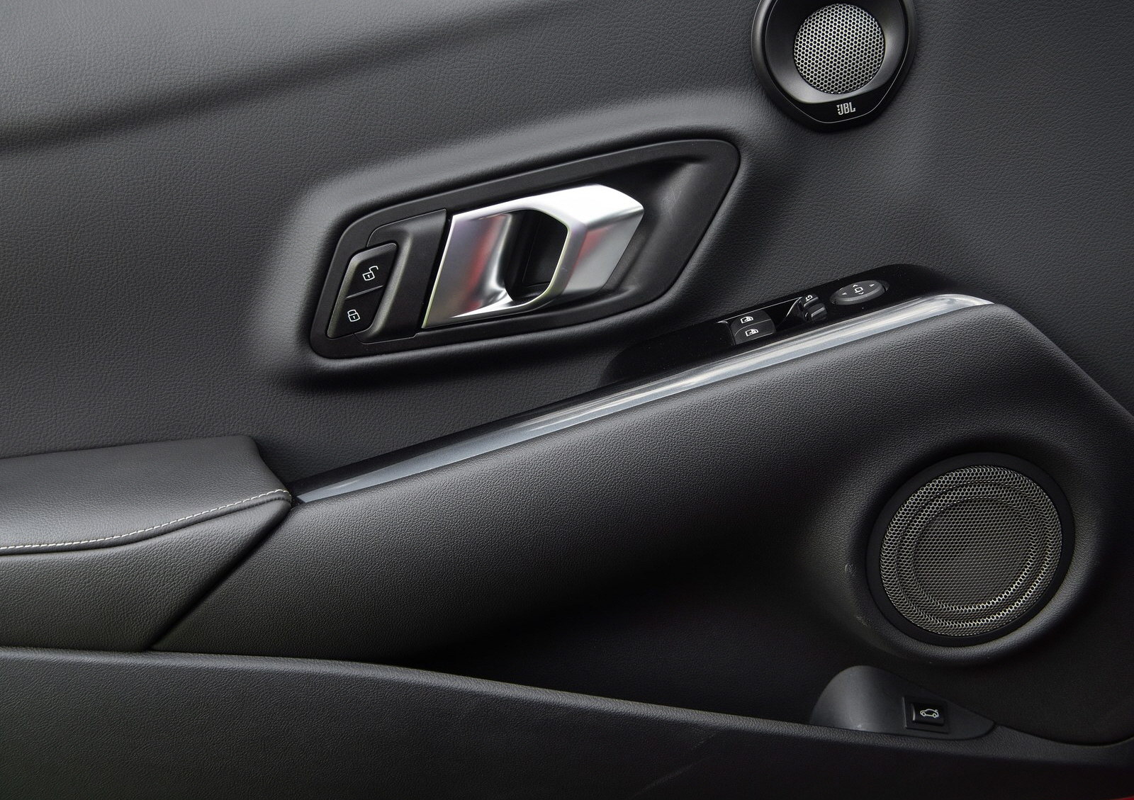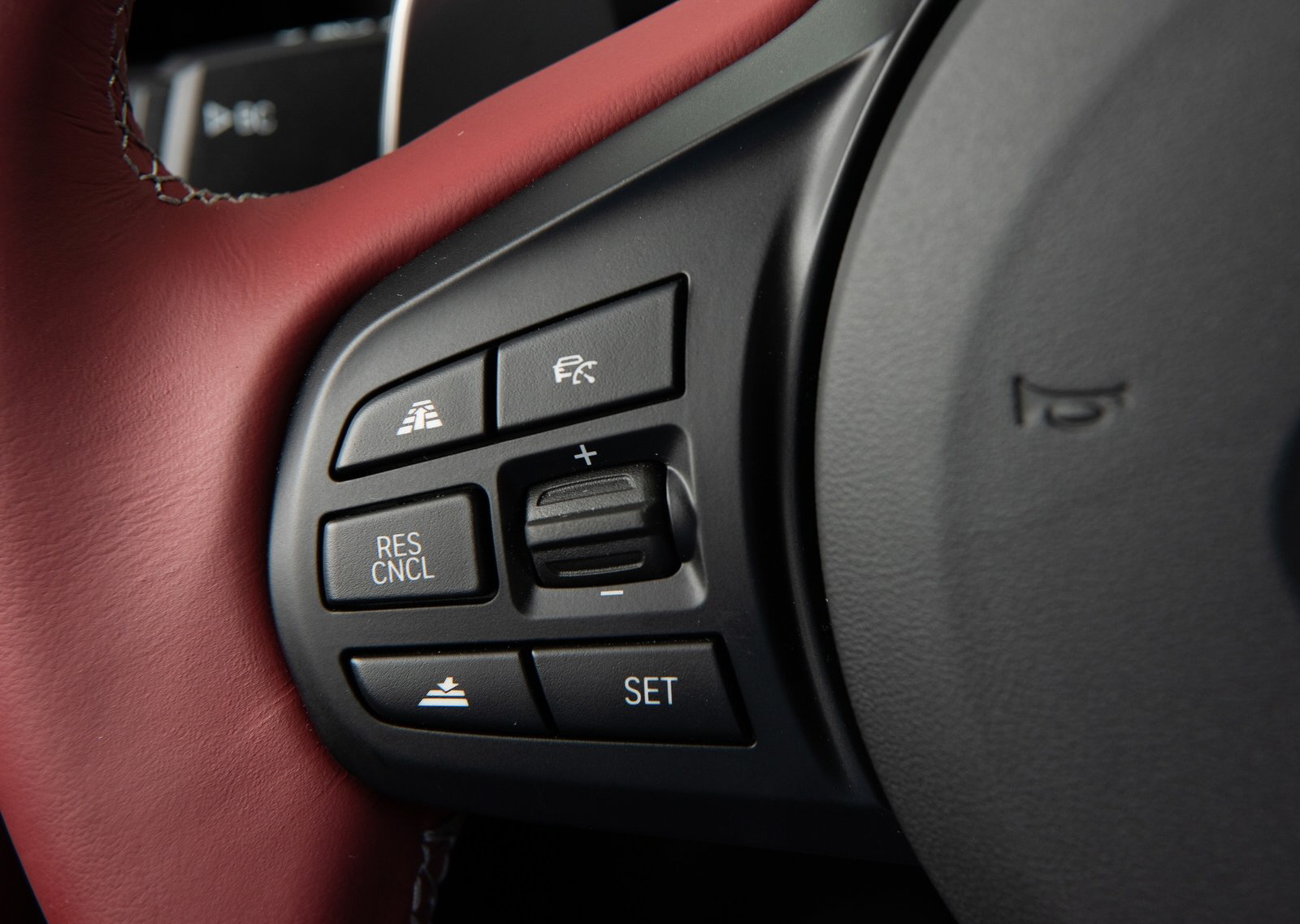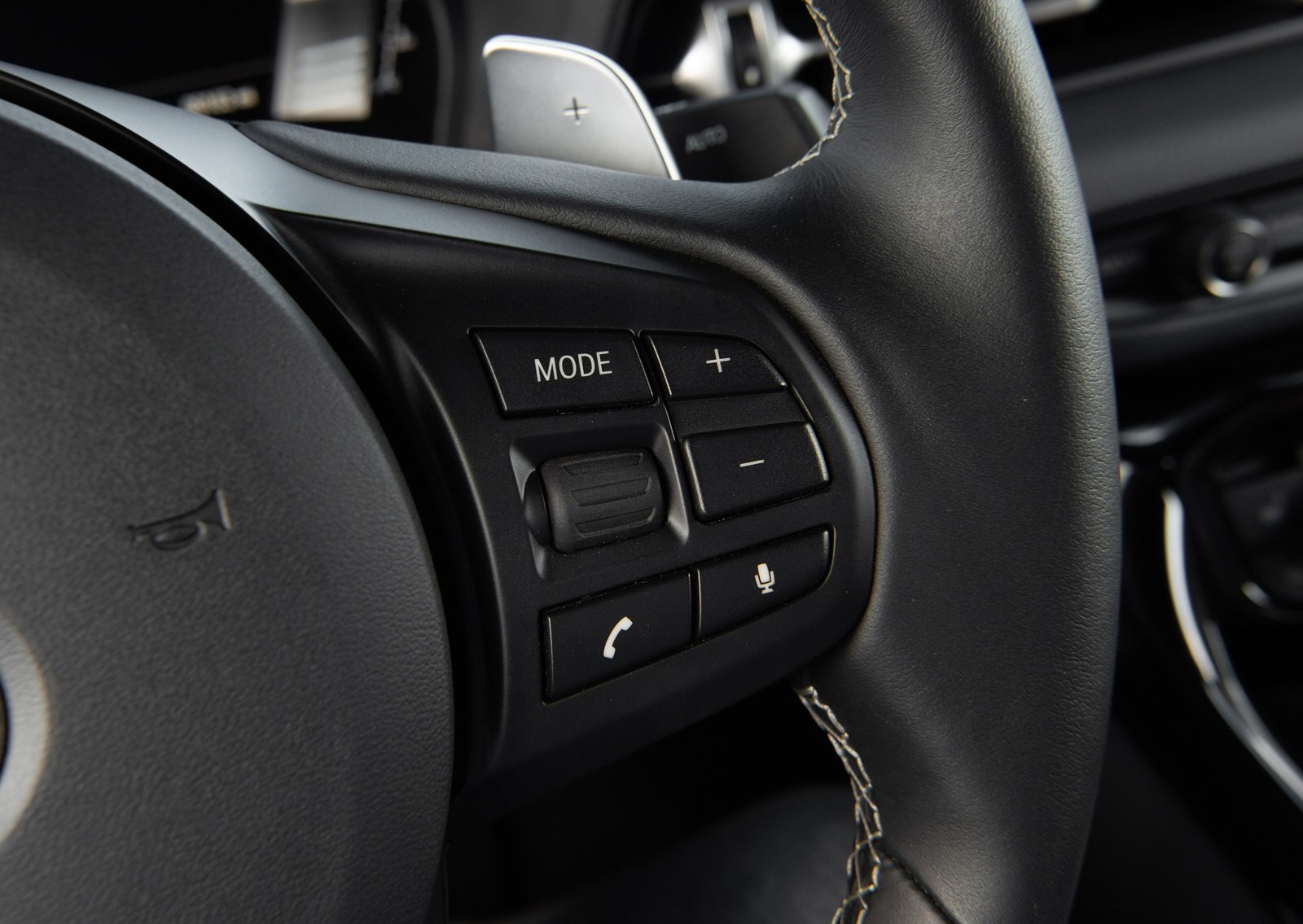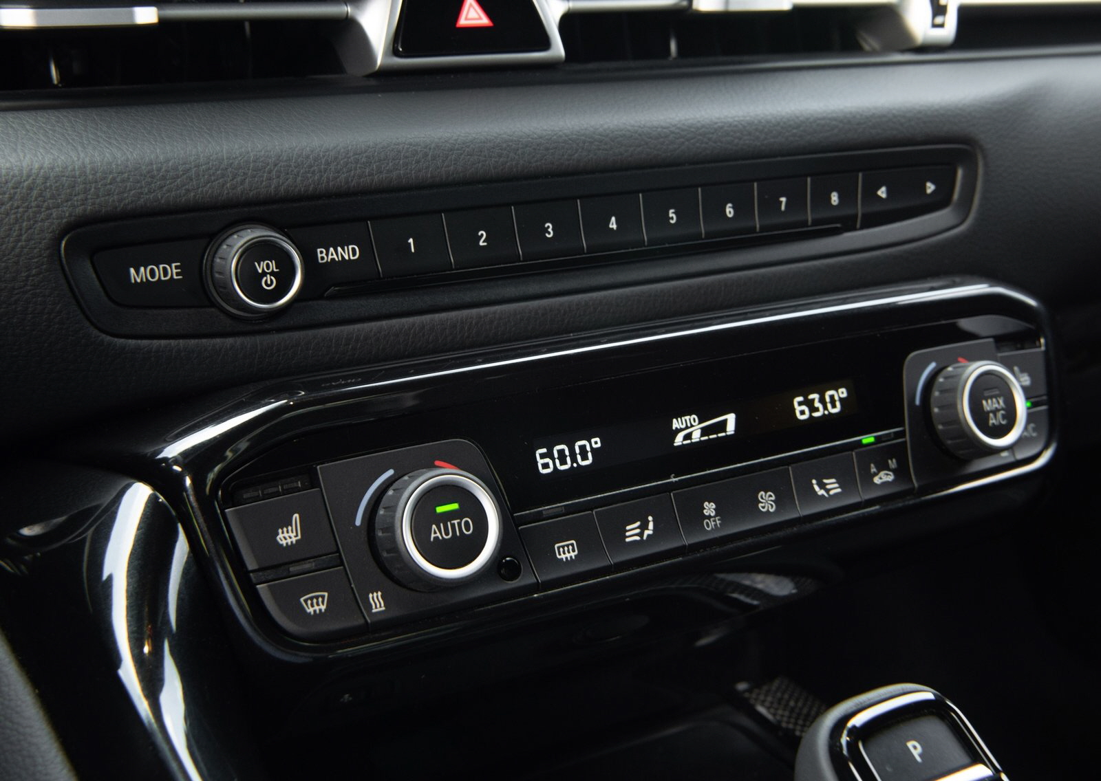 센터 콘솔은 스포츠 운전을 위한 제어장치를 단단히 묶는다. 실내 온도 조절 패널이 중앙 대시에서 돌출되어 있어 작동이 용이하며 시선을 도로에 고정시키는 데 도움이 된다.