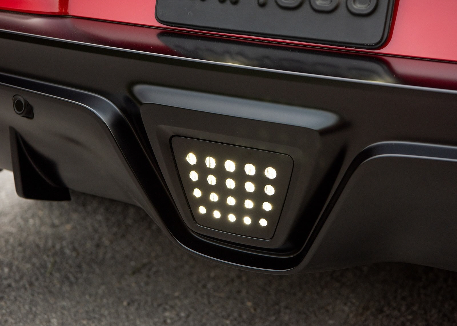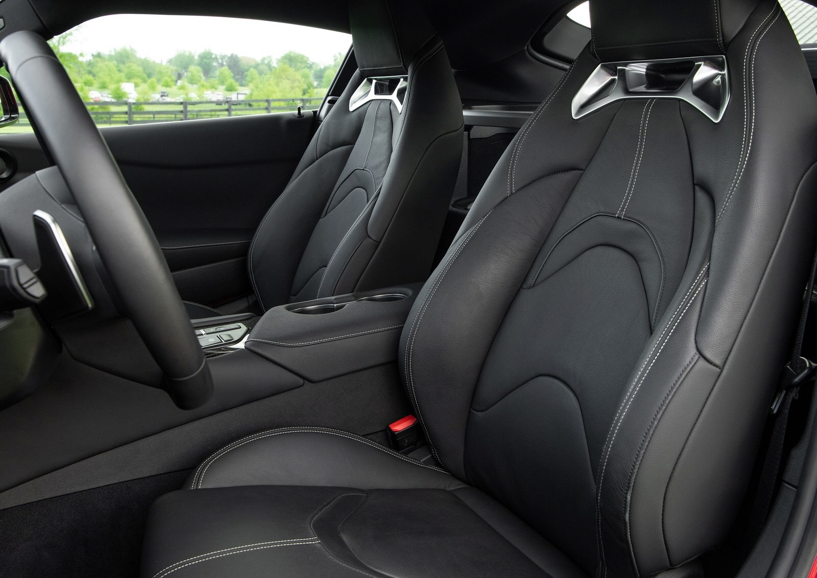 하부 센터 콘솔은 시프터 및 성능 주행을 위한 필수 컨트롤을 단단히 그룹화한다. 상부 콘솔은 비대칭 형상으로 운전석 쪽이 오른쪽 다리 받침 역할을 하는 패딩 기둥에 접해 있다. 디자인은 드라이버를 감싸고, Launch Edition에서 사용할 수 있는 대비되는 내부 색상으로 증폭되는 효과.