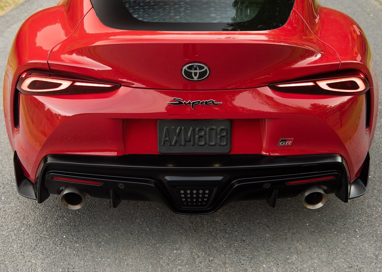 사다리꼴 리어 범퍼 모양은 타이어 쪽으로 움직이는 역동적인 감각을 전달한다. 4겐 수프라는 각각 다른 소프트볼 크기의 둥근 램프 네 개가 들어 있는 선광등, 즉 선광등을 들고 성명을 발표했다. 2020년형 GR Supra는 또한 뚜렷한 조명 진술을 하고 있지만, 그것의 후면 조합 램프가 놀라운 칼날 모양의 형태와 회전, 꼬리, 정지 기능의 단순한 배열로 되어 있다. 포뮬러 원 경주용 카의 후면 표시등 LED에 의해 영감을 받은 GR Supra의 백업 램프는 하부 범퍼의 중앙에 위치한 20개의 LED 시리즈다.