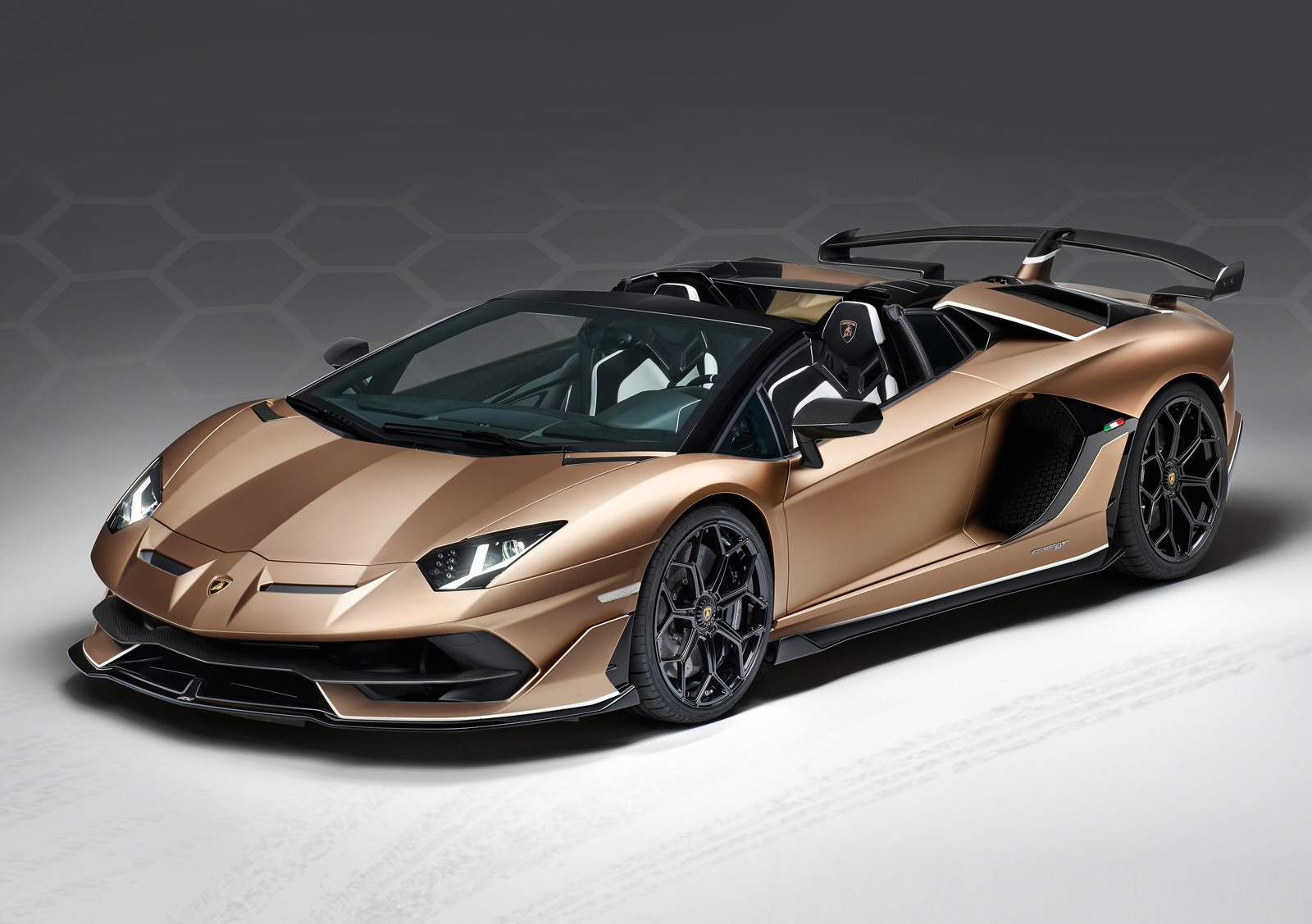 2020 람보르기니 아벤타도르 SVJ 로드스터는 단 800대만 만든다. 제네바에서 신형 무광색 브론즈 제나스에 전시된 이 아벤타도르 SVJ 로드스터는 빈코페인(흰색)에 특수 애드 페르소남 리브리를 특징으로 한다. 전면 및 후면 범퍼의 날카로운 라인을 강조한 엔진 보닛의 디자인이 업그레이드 되었다.