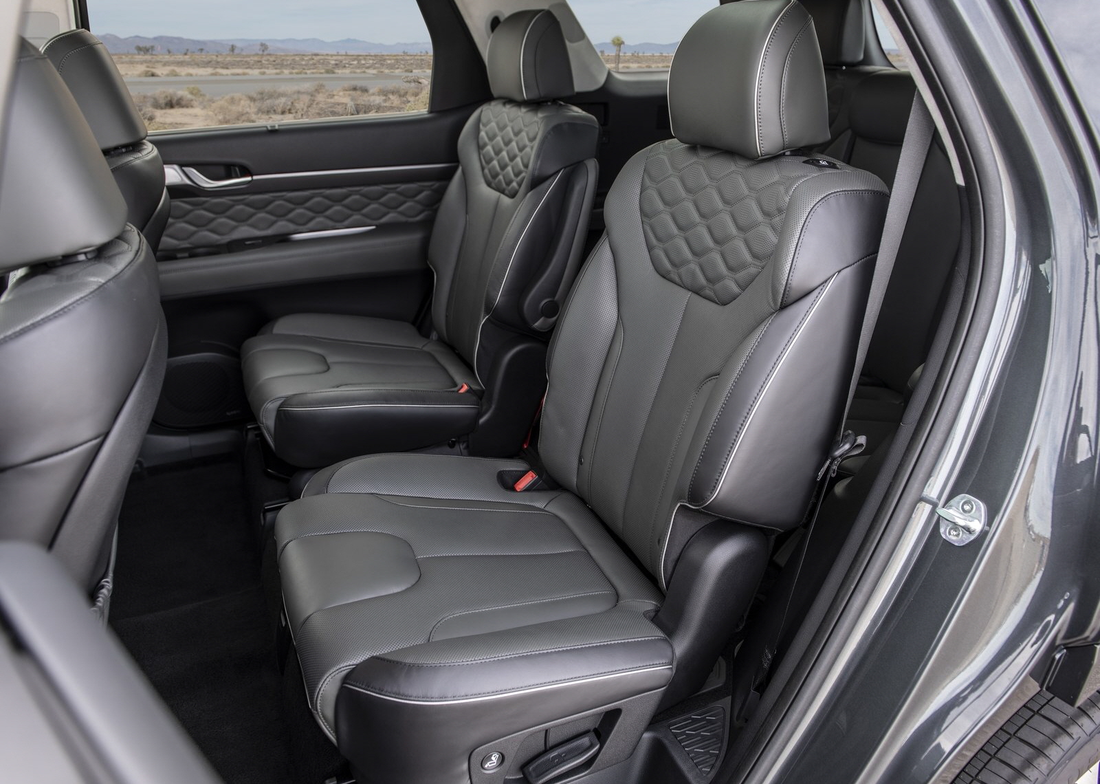 원터치 2열 시트는 3열 시트로 쉽게 출입할 수 있도록 좌석을 앞뒤로 원터치 조작할 수 있다. 더 편리한 세 번째 열은 파워 폴딩/폴딩 해제 및 리클라이닝 좌석을 제공한다. 2열 선장의 의자에는 환기되는 좌석 표면도 비치되어 있다. 모든 팰리세이드 좌석열에는 모든 승객을 위한 USB 콘센트가 제공되며, 총 7개의 USB 콘센트가 있다.