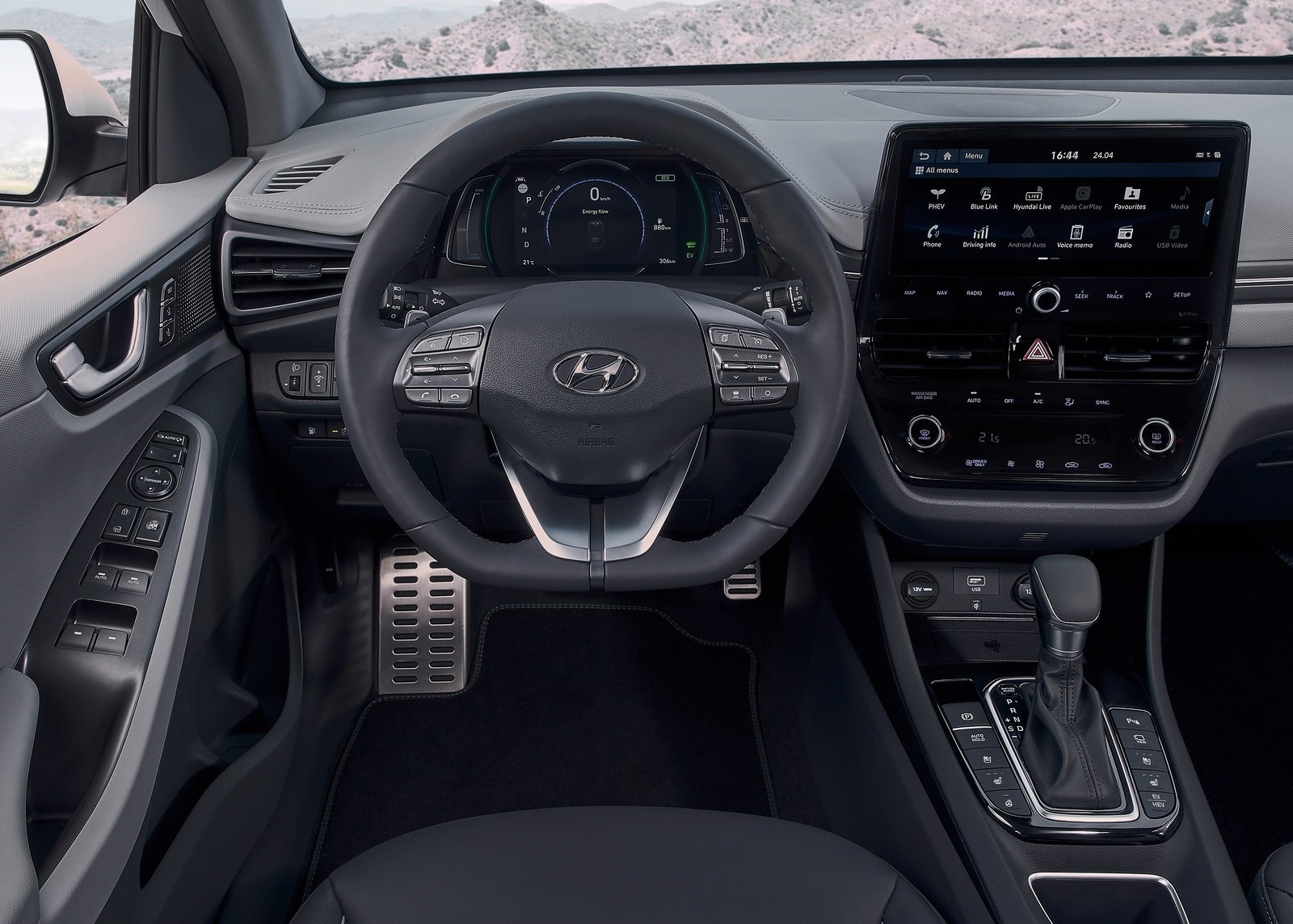 새로운 와이드스크린 10.25인치 AVN 화면 아래에는 난방 및 실내 온도 조절용 제어판이 재설계되어 매끈하고 윤기나는 마무리를 자랑하고 있다. 새로운 터치식 제어 버튼을 사용하면 난방, 환기 및 에어컨을 직관적으로 작동할 수 있다. 현대 아이오닉 일렉트릭 표준 고해상도 7인치 LCD 콘솔 디스플레이(하이 트리밍 버전에서는 하이브리드 및 플러그인 하이브리드 제품군에서도 사용 가능)는 다양한 구동 모드 테마를 시각화하기 위해 무드 조명으로 개선되었다.
