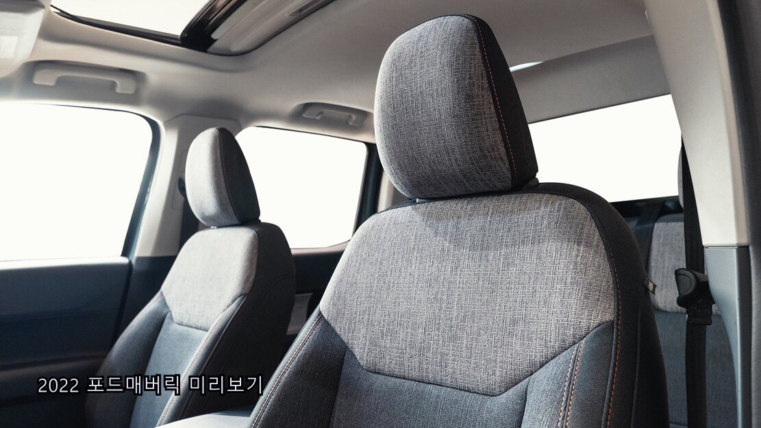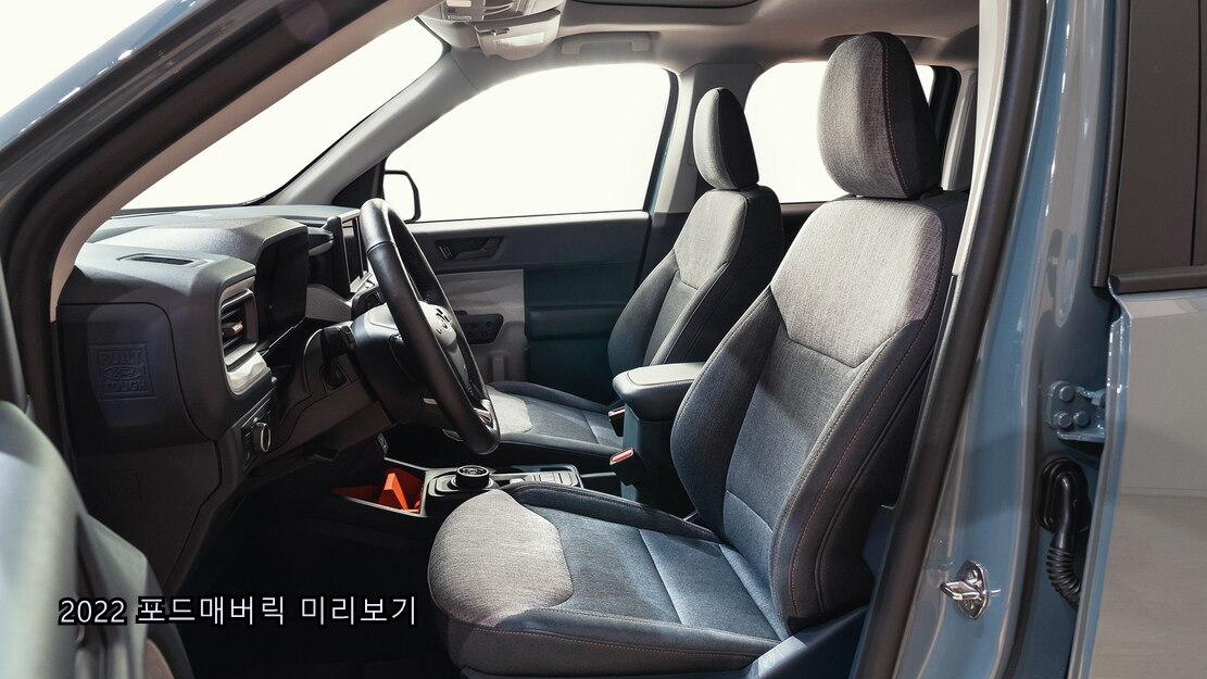 2022 포드매버릭은 매버릭 스포츠의 상징적인 포드 픽업 트럭 스타일로, 제조사의 대표적인 드롭 다운 사이드 윈도우에 경의를 표하는 도어 디자인과 가장자리로 길게 뻗은 프론트 엔드가 표준 LED 헤드램프와 그릴을 연결하여 더욱 돋보이며 세련된 외관을 연출한다.