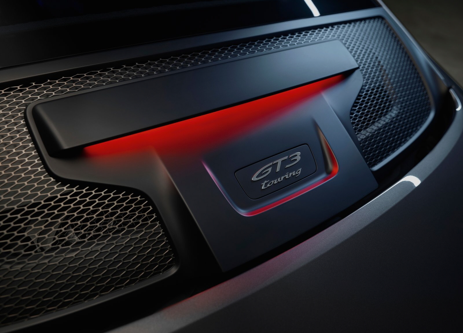 가슴을 설레게 하는 디자인의 GT3 투어링 로고가 새겨진 리어 리드 그릴은 업그레이된 초고성능 엔진 위에 장착되었다. 사이드 윈도우 트림 스트립과 스포츠 배기 시스템의 테일파이프는 크롬으로 제작되었다. 이것은 투어링 옵션 패키지 중 새틴 광택 블랙으로 마감되었다. 이 때 프론트 조명 모듈은 다크 컬러가 페인팅된다.