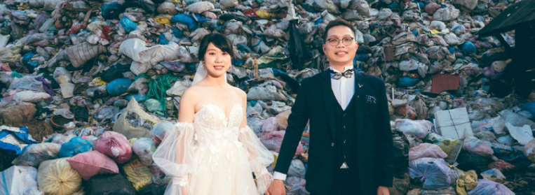 시오우와 슈에가 최근 소셜미디어(SNS)에 공개한 웨딩 사진의 배경은 대만 난터우현 풀리시에 있는 쓰레기 처리장 앞이었어요. 이들은 대만의 여러 도시가 쓰레기 처리 문제를 겪고 있다는 것을 깨닫고, 사람들의 경각심(警覺心)을 이끌어 내기 위해 해당 사진을 공개했다고 말했습니다. 인구는 계속 줄어들고 있지만 쓰레기 배출량은 늘고 있다는 사실을 전하고 싶었던 거죠.