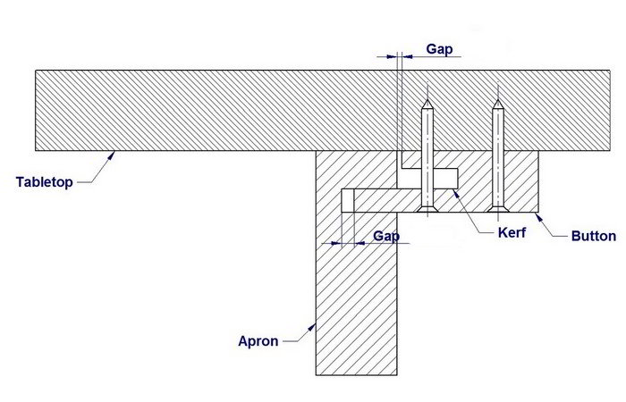 1. 버튼 패스너 – 테이블 상판이 확장 및 축소됨에 따라 버튼 패스너가 상황에 따라 자연스럽게 움직인다. 홈은 전체 에이프런 레일을 따라 만들거나 버튼 너비보다 약간 더 길게 만들 수 있다. 제작 및 설치가 쉽고 두 방향 (에이프런 레일을 따라 수직)으로 이동할 수 있다.