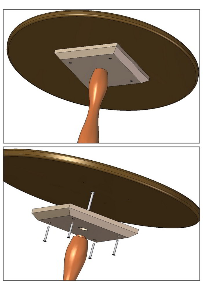 16. 삼각대 테이블 구조에 따른 원형 테이블 상판을 부착하는 방법이다.